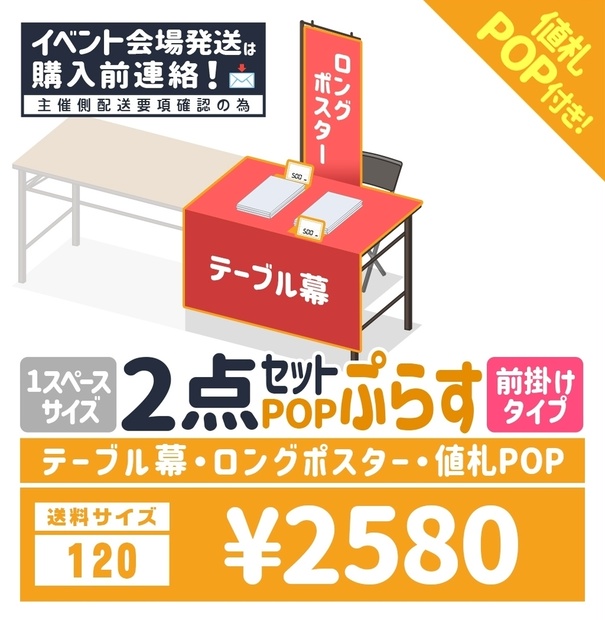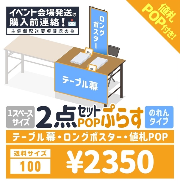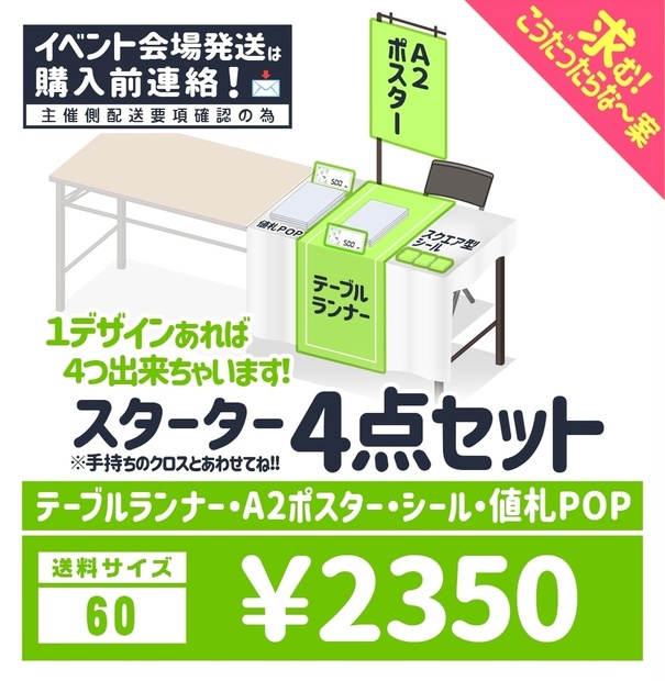 テーブル幕 + A2ポスター + オリジナルシール の3点セット!